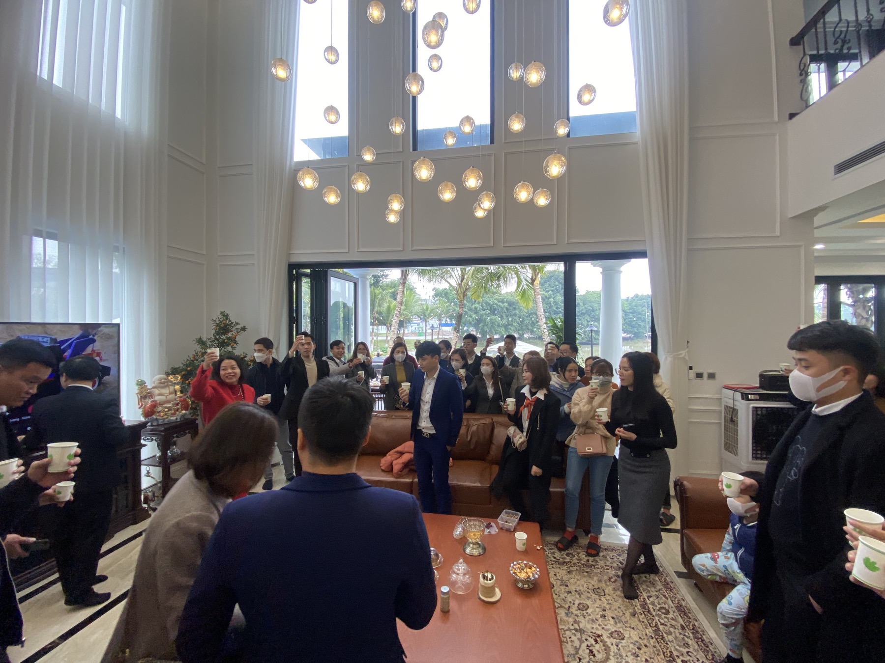 Sau khi kết thúc buổi lễ chùa đầu năm, các CBNV đã có mặt tại siêu Biệt thự đảo TIS54a để tham dự buổi khai xuân do Ban lãnh đạo chủ trì. Phát biểu tại buổi gặp mặt đầu năm mới, Chủ tịch HĐQT kiêm TGĐ Nguyễn Thanh Hùng đã gửi tới những lời tri ân, động viên và chúc mừng các CBNV. Đồng thời đặt ra mục tiêu trong năm 2022 để cùng các Chiến binh kề vai sát cánh, nỗ lực thực hiện.