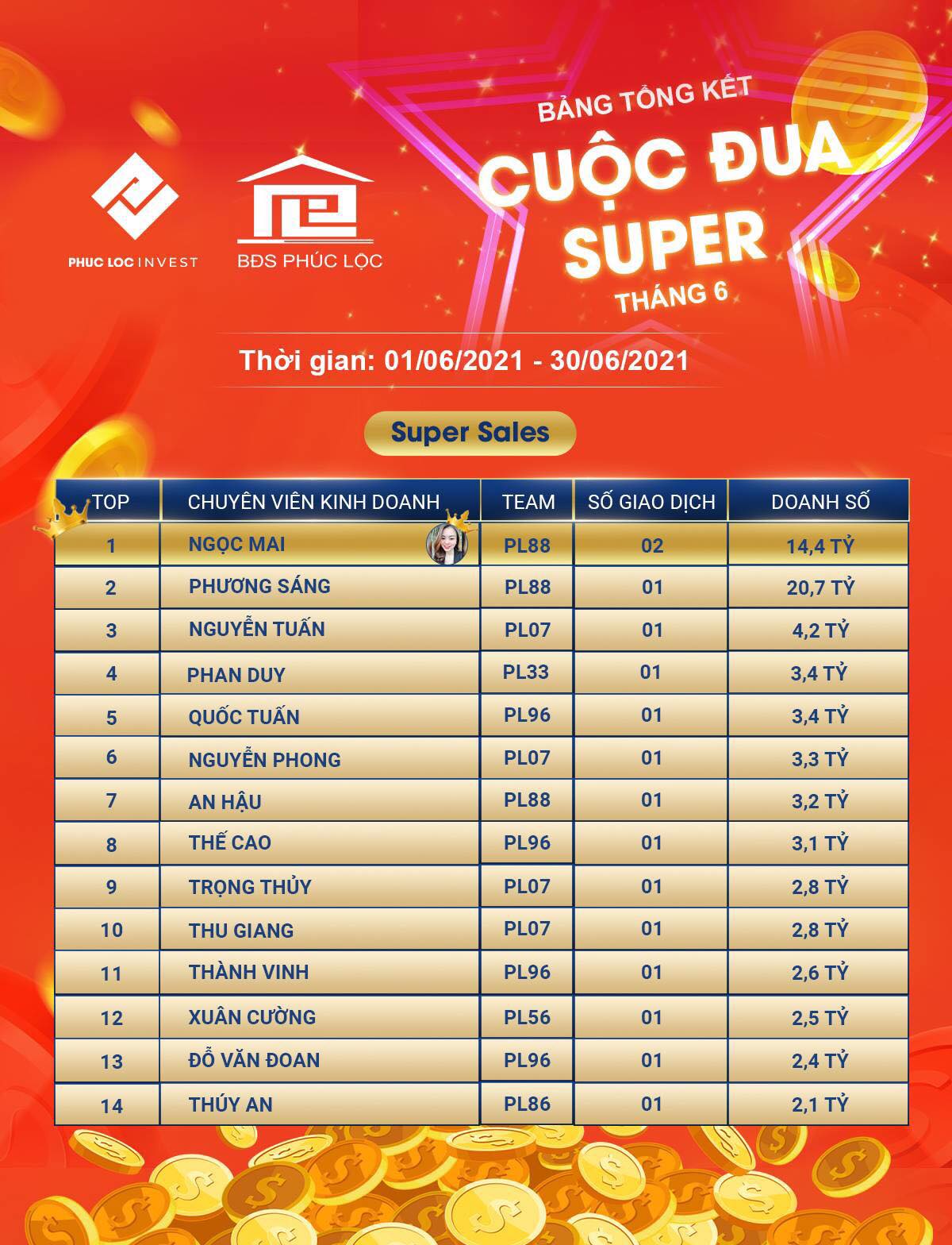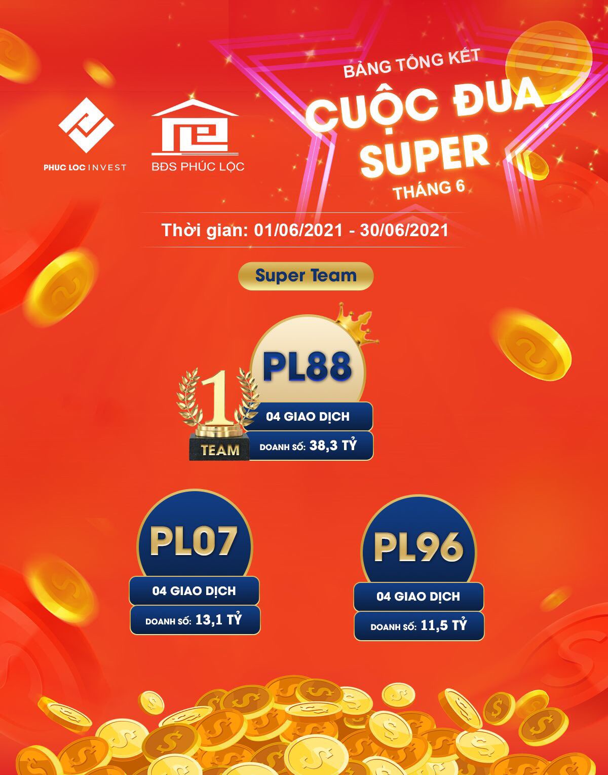 Bất Động Sản Phúc Lộc / Hoạt động / BĐS Phúc Lộc tổng kết BXH Super Sales & Super Team tháng 6/2021
