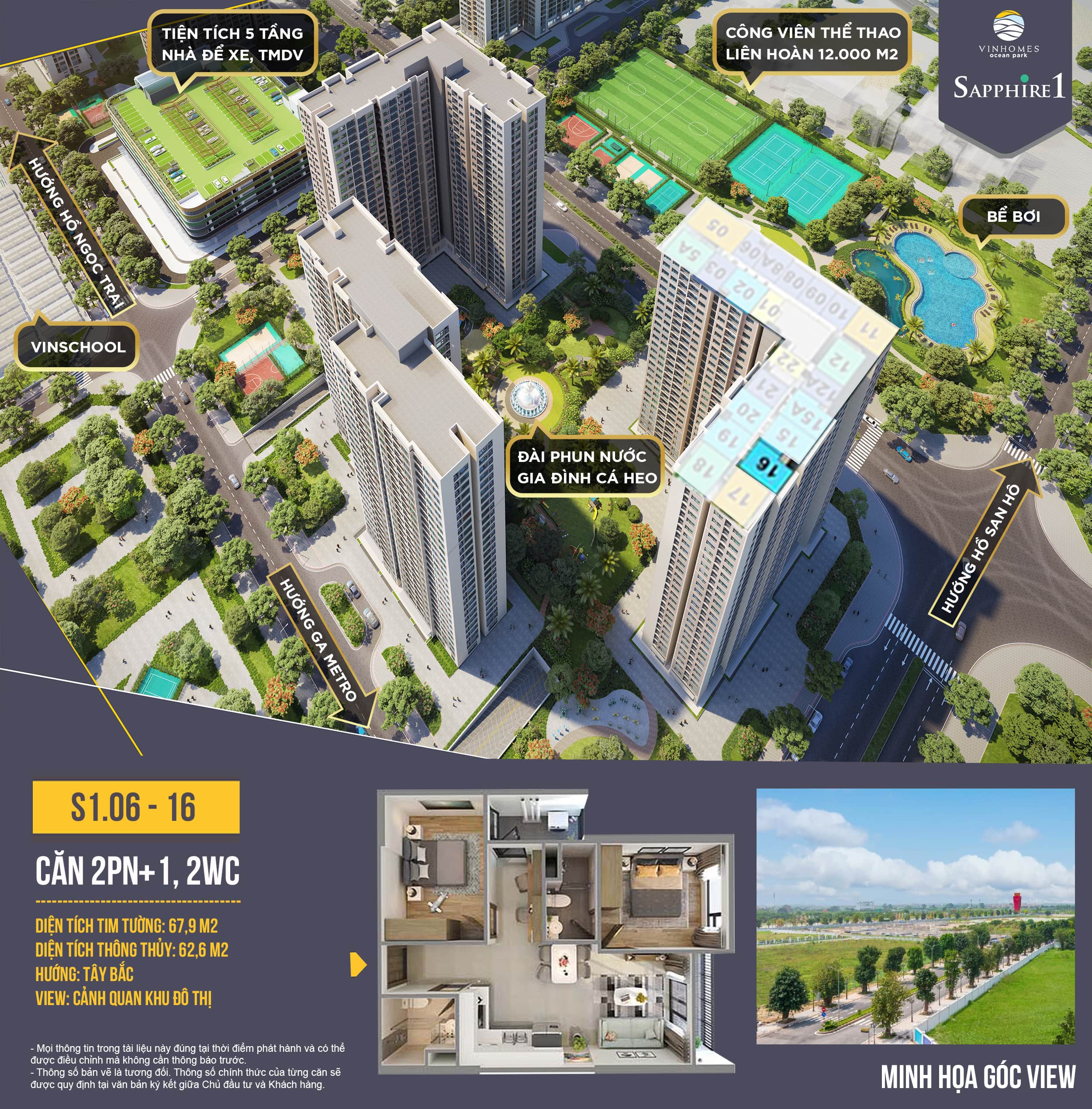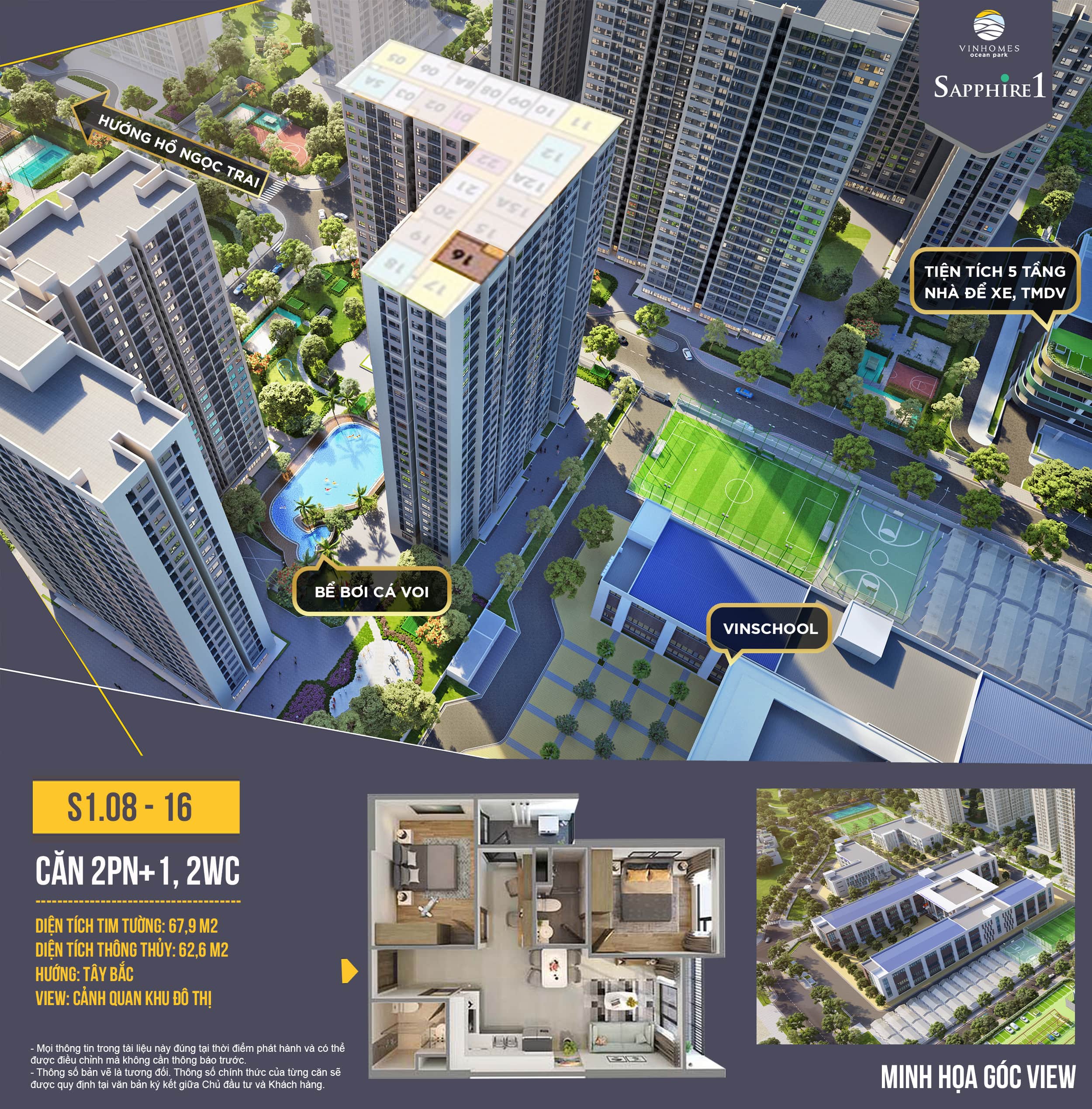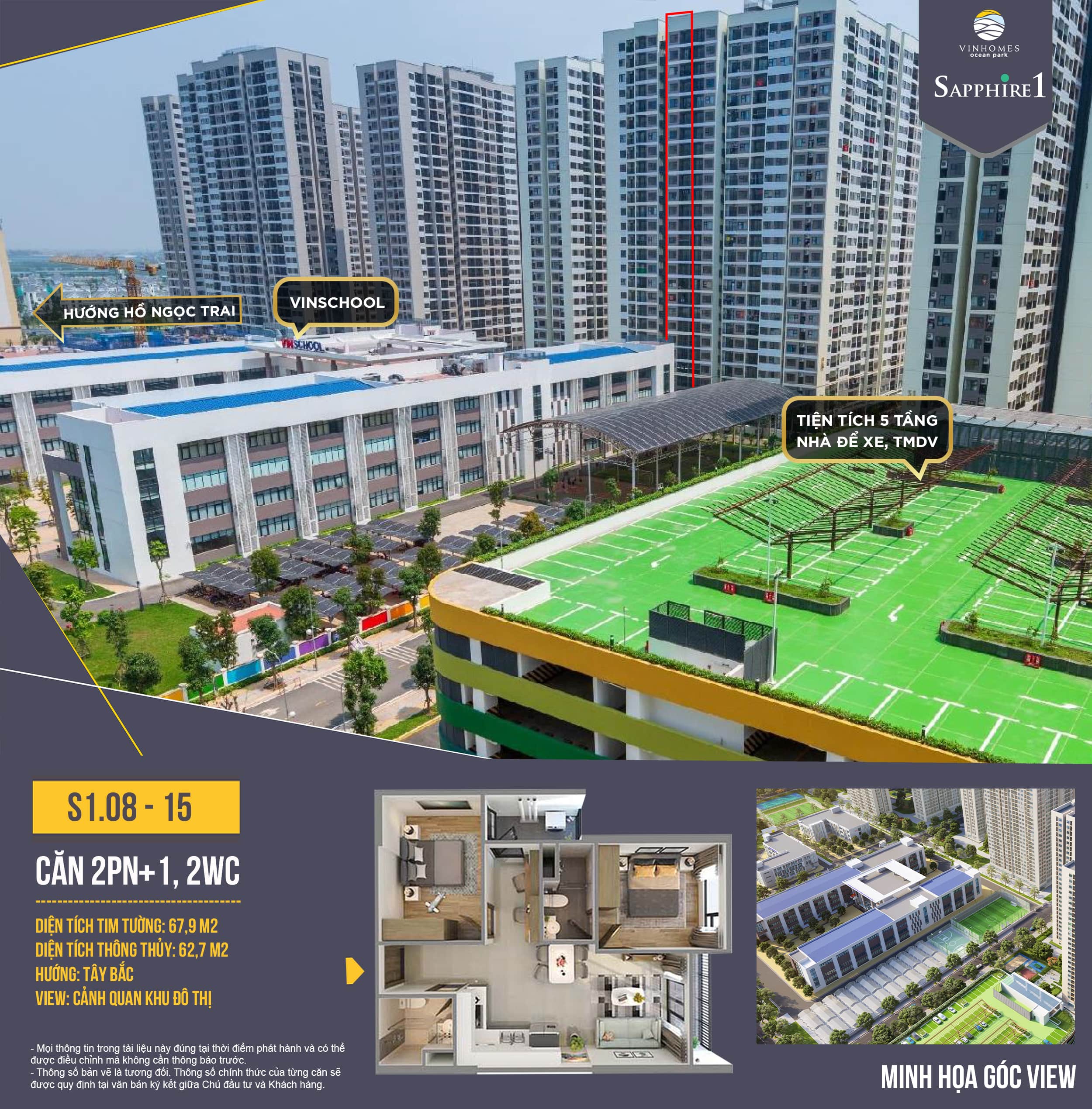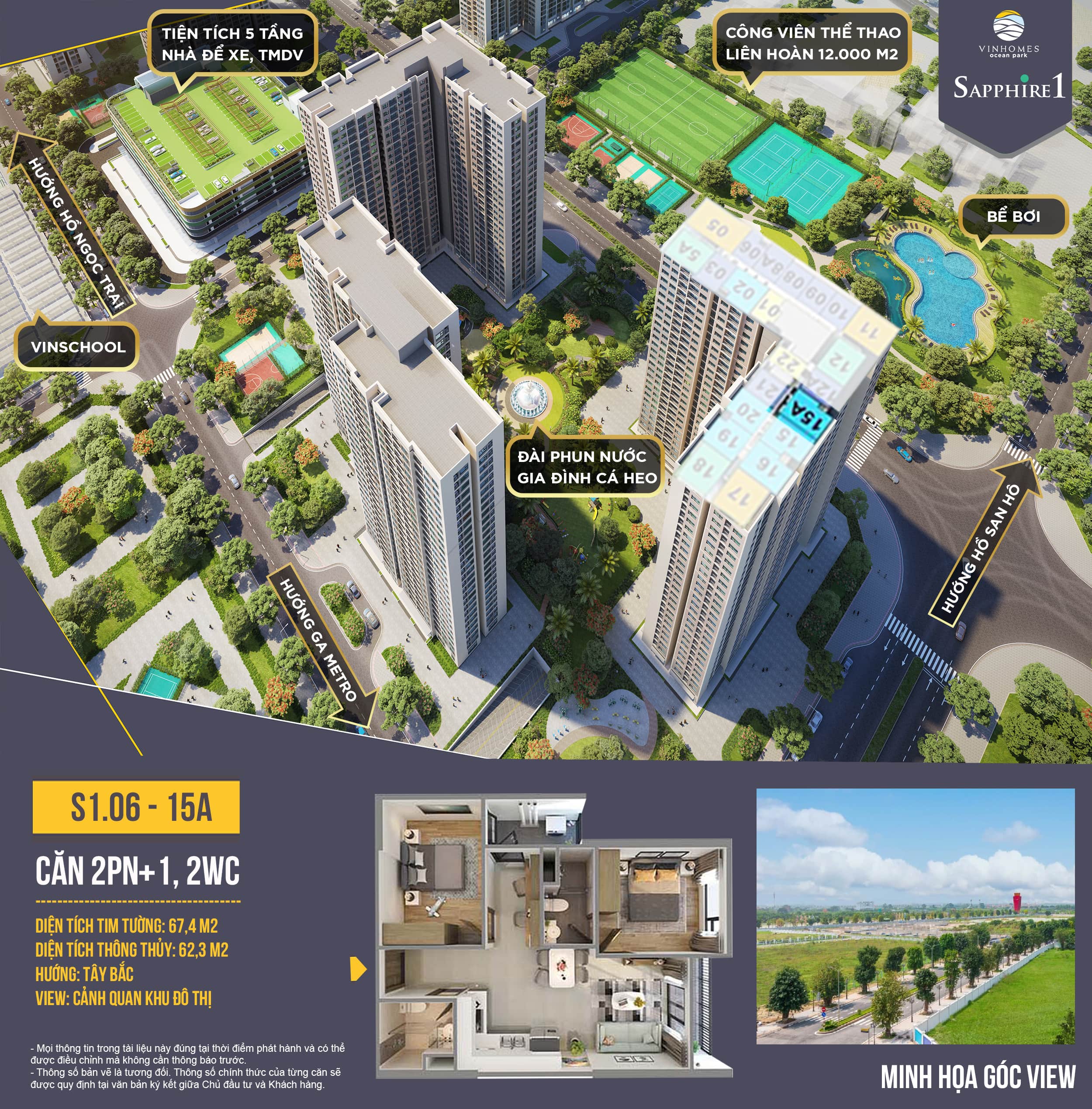 Bóc mái căn hộ 2PN+1 2WC tòa S1.10 Sapphire 1
