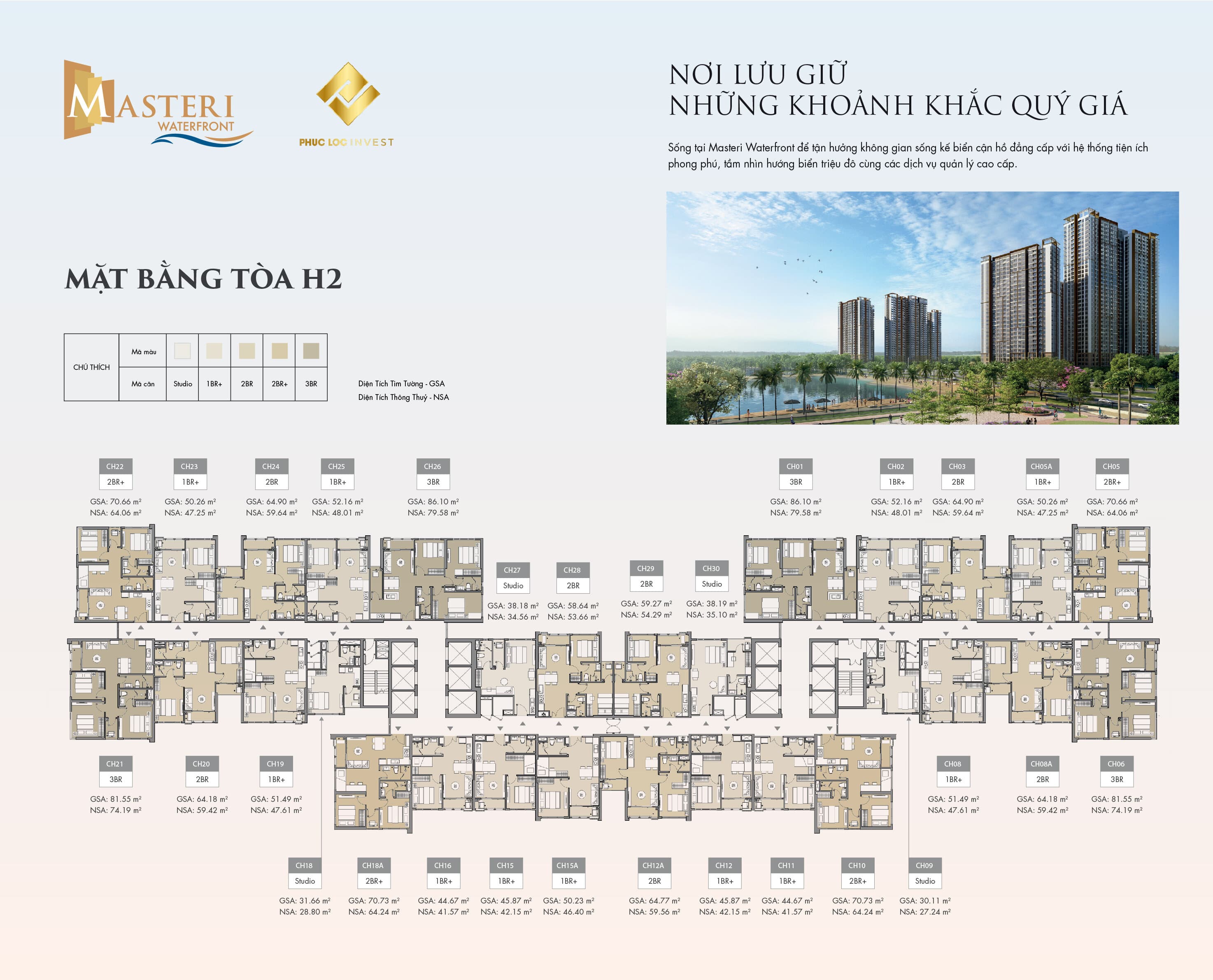 Tổng mặt bằng tòa H2 Masteri Waterfront