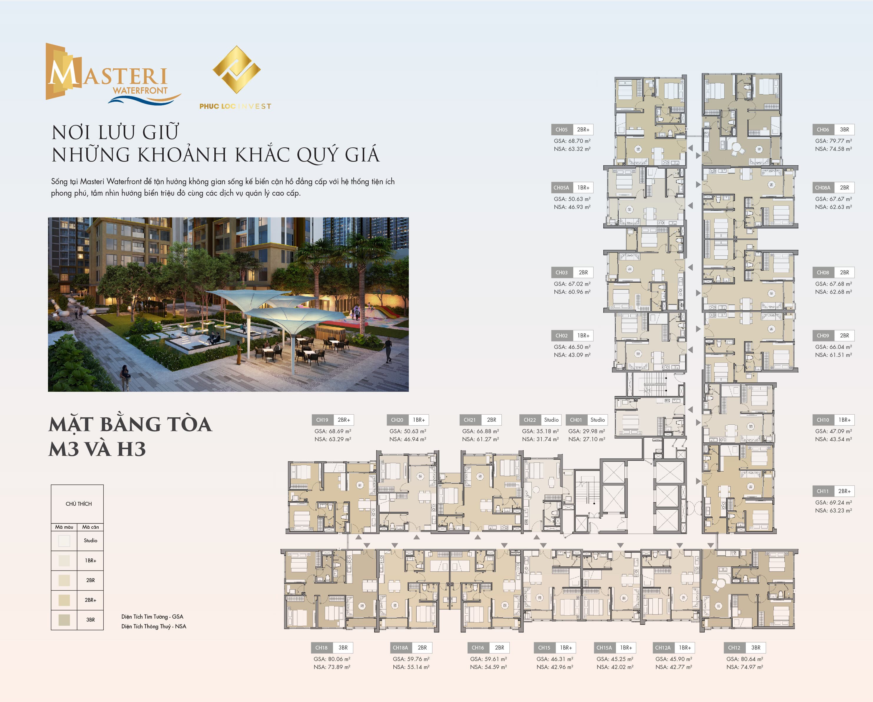 Tổng mặt bằng tòa M3 & H3 Masteri Waterfront