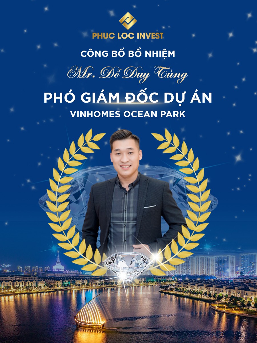 Sau thời gian gắn bó, dựa trên những nỗ lực đóng góp và thành tích xuất sắc đã đạt được trong thời gian công tác, Ban lãnh đạo Công ty Cổ phần Đầu tư và Kinh doanh Phúc Lộc (𝐏𝐡𝐮𝐜 𝐋𝐨𝐜 𝐈𝐧𝐯𝐞𝐬𝐭) đã quyết định bổ nhiệm Ông Đỗ Duy Tùng – GĐKD Phòng Kinh doanh PL09 giữ chức vụ Phó Giám đốc dự án Vinhomes Ocean Park.