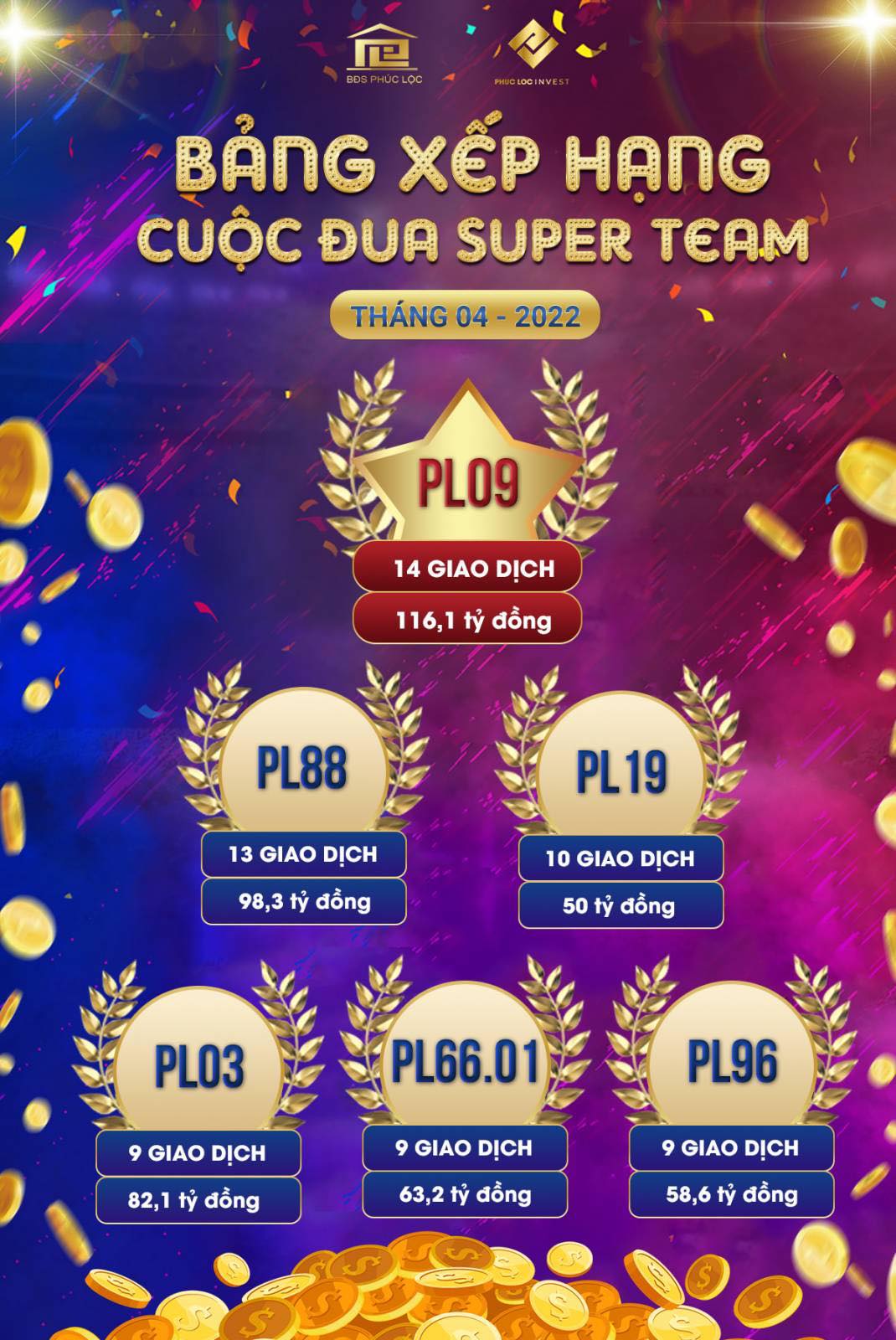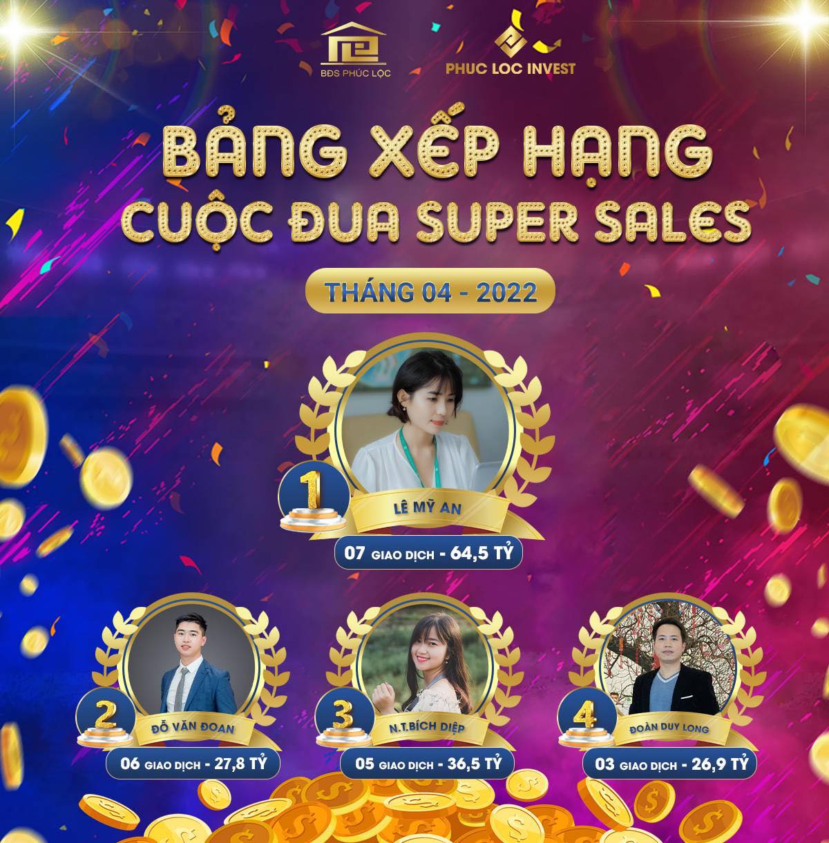 Bất Động Sản Phúc Lộc / Hoạt động / Tổng kết cuộc đua Super Sales & Super Team tháng 4/2022