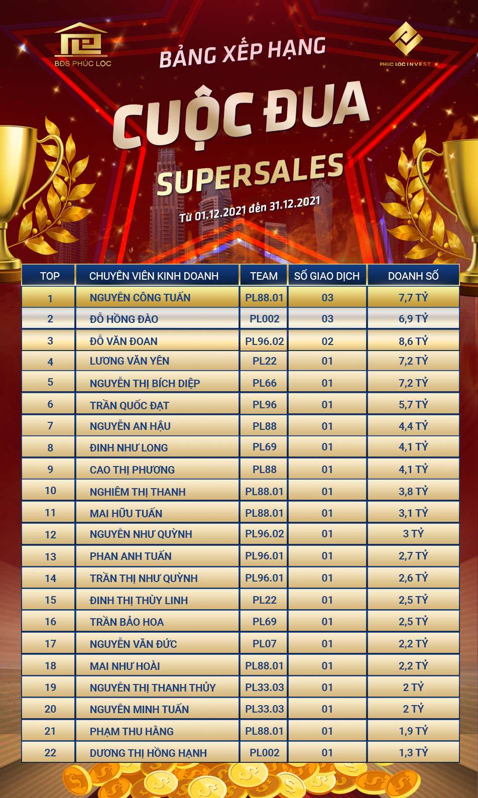 Tại BXH Super Team, chúc mừng PKD PL88 đã là tập thể “chốt” lại năm 2021 bằng cú đúp giải thưởng. Bao gồm giải Super Team dành cho PKD xuất sắc nhất tháng với thành tích đạt 09 giao dịch trị giá 29,6 tỷ VND.